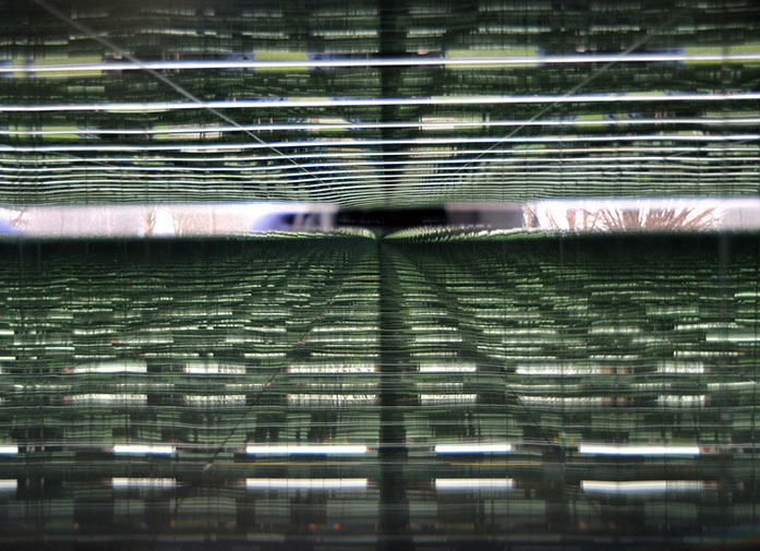 Ein Augenblick – eine Zeitspanne – fällt mit Licht in einen verspiegelten Raum und löst das äußerlich Festgefügte auf.
