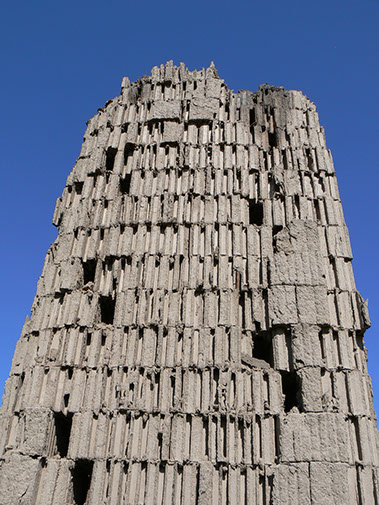 Betonsockel, Rundeisen, ungebrannte Ziegel